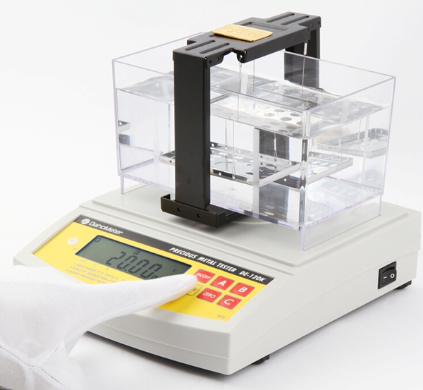 1、密度測試法(黃金純度含量與k值測試儀):用此方法測定金首飾的密度值、K值,是鑒定金首飾迅速而又準確的方法,為當鋪行業較為廣泛采用的一種方法,對金首飾無損傷,從而能夠更好保護典當物品。但針對完全空心的會顯示LO,及空的如果空氣不干凈,也會顯示LO或者低于實際K值的顯示。